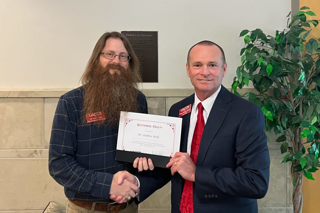 The 2022 Outstanding Faculty Award was presented to Dr. Andrew Seely, science faculty and director of the Center for Teaching and Learning Excellence.
