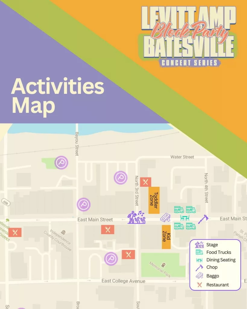 The intersection of 3rd and Main Street in Batesville will close at 12 p.m. Thursday as The Levitt AMP Batesville Block Party Concert Series returns to downtown, bringing live music, food, and family-friendly entertainment to the city’s Entertainment District.