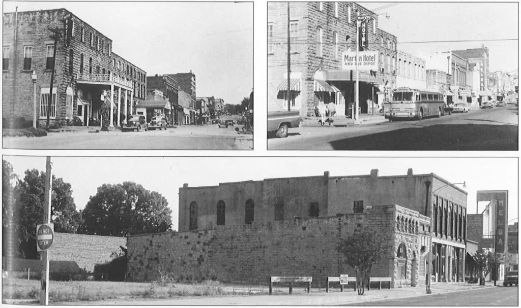 In 1903, the upper level of the hotel was destroyed by fire. The third floor was removed, and the roof was modified from a gable type to a flat roof. James A. Luster rebuilt the hotel and reopened it.