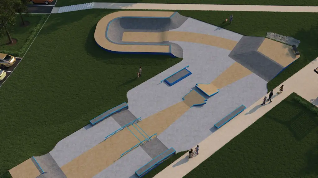 Skate Park (above): Designed and built by the nationally renowned American Ramp Company, the new Riverside Park Skate Park will provide a modern, safe space for skateboarding, scootering, and BMX biking. Designed for users of all ages and skill levels, the facility will encourage active lifestyles and create a welcoming, creative outlet for youth.