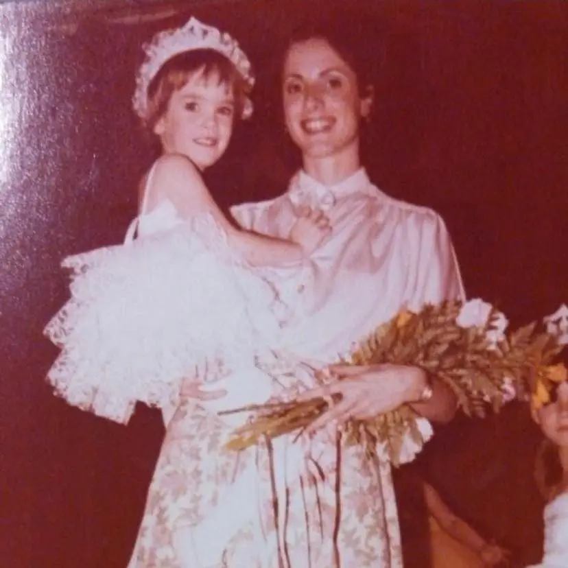 Cindy Hubberd holding her daughter, Hollie, at a 1979 recital.