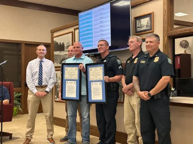 Third, Patrolman Jeffrey Tate received a Valor Award following his “extraordinary bravery and selflessness” as he responded to a single-vehicle accident on St. Louis Street on July 7 (in front of Hardee’s), in which a person was trapped inside a vehicle that had caught fire.