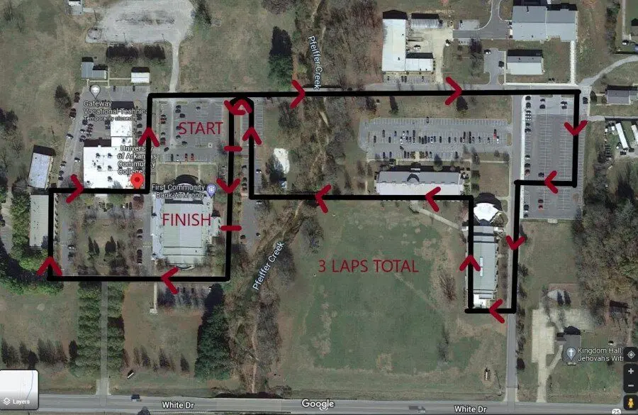 The 5K will start and finish on the east side of Independence Hall, featuring three scenic loops around the UACCB campus.