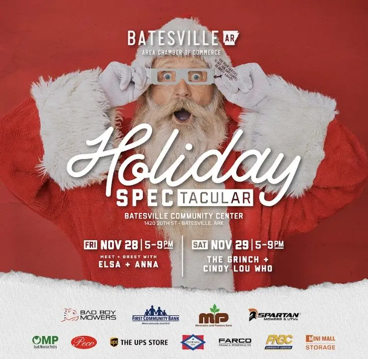 The Holiday SPECTacular will take place Friday, Nov. 28, and Saturday, Nov. 29, from 5 to 9 p.m. at the Batesville Community Center grounds. The event will include live entertainment, character appearances and family activities while renovations continue at Riverside Park.