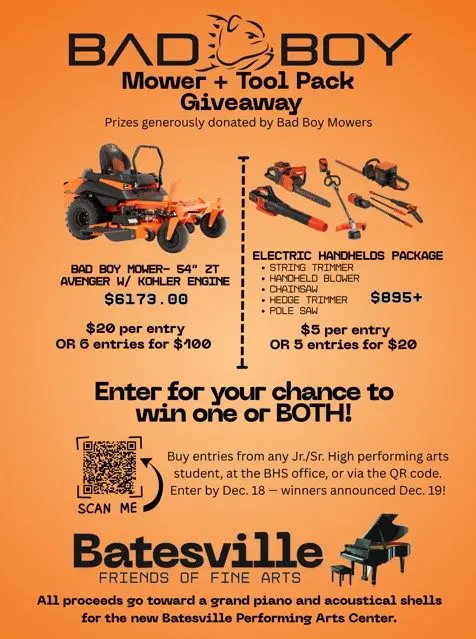 To support the campaign, the group has opened a digital giveaway to the community. Digital ticket sales are open through Dec. 18, and winners will be announced and notified on Dec. 19. Entries must be submitted by the deadline to be included in the drawing. Tickets may also be purchased at the Batesville High School office.