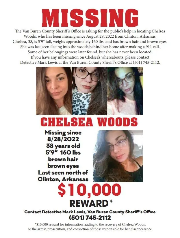 Woods is described by authorities as having brown hair and brown eyes. Anyone with information about her whereabouts is asked to contact Detective Mark Lewis or the investigative unit at the Van Buren County Sheriff’s Office at (501) 745-2112.