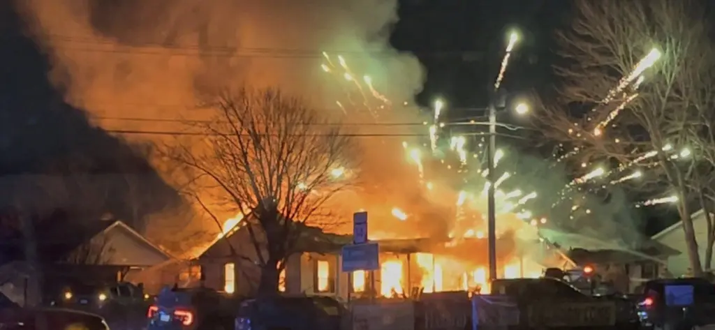 A team of 18 firefighters used three engines, two brush trucks, and a rescue unit to battle the blaze. While crews established a water supply quickly, fire officials said their suppression efforts were hindered by fireworks going off inside the home. Photos shared on social media during the incident showed the pyrotechnics igniting as the fire spread.