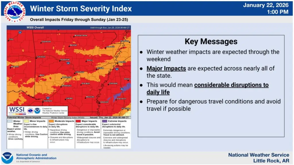 A powerful winter system moving into Arkansas this weekend is expected to bring significant snow, sleet, freezing rain, and dangerously cold temperatures to north central and northeast parts of the state, weather officials said Thursday, prompting safety warnings from emergency agencies and transportation officials.