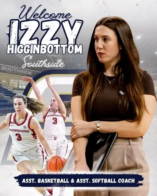 Izzy Higginbottom, a Batesville native and former University of Arkansas standout, has been hired as an assistant coach for girls basketball and softball at Southside Charter High School, the school announced Friday.