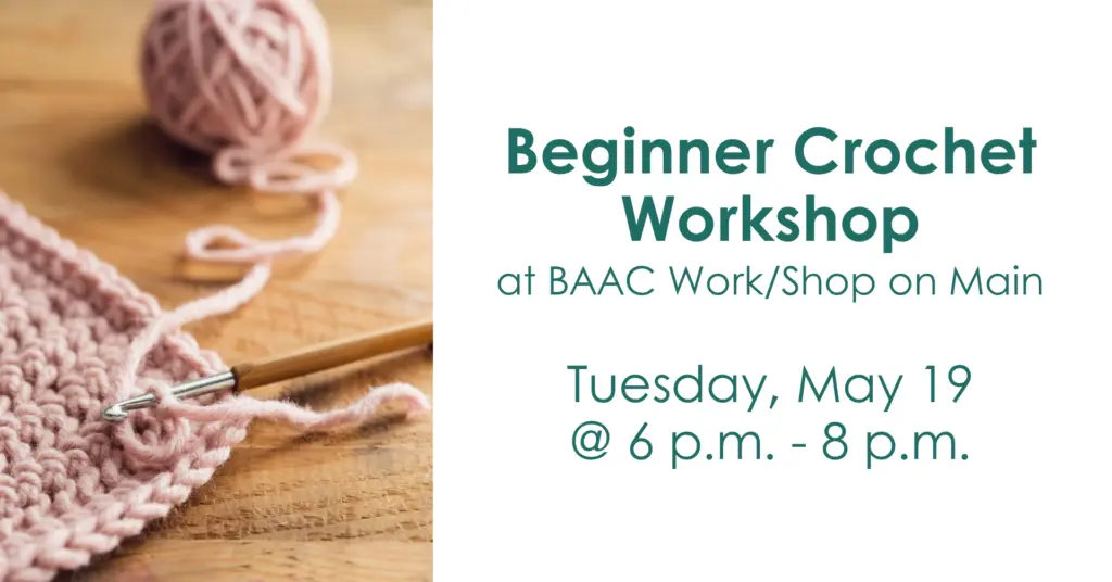 The Batesville Area Arts Council (BAAC) is hosting a Beginner Crochet Workshop on Tuesday, May 19, 6 – 8 p.m., at the BAAC Work/Shop on Main, located at 246 E Main Street in Batesville. This hands-on class is perfect for beginners or anyone looking to refresh their crochet skills in a welcoming, supportive environment. Instructor Victoria Hutcheson will lead participants through the fundamental techniques of a basic chain stitch and single crochet stitch. By the end of the session, you’ll use your new skills to create a simple and practical washcloth to take home!